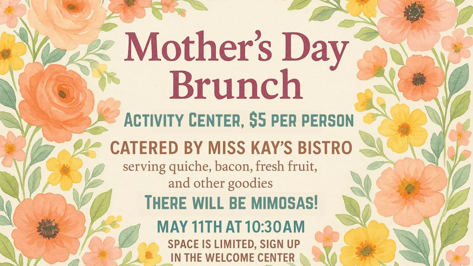 Mother’s Day Brunch Details: May 11, 10:30 AM – 12 PM