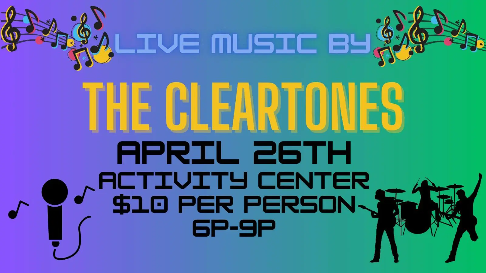 Come join us at the Activity Center live music event with The Cleartones, featuring Miguel! The cost is $10 per person.