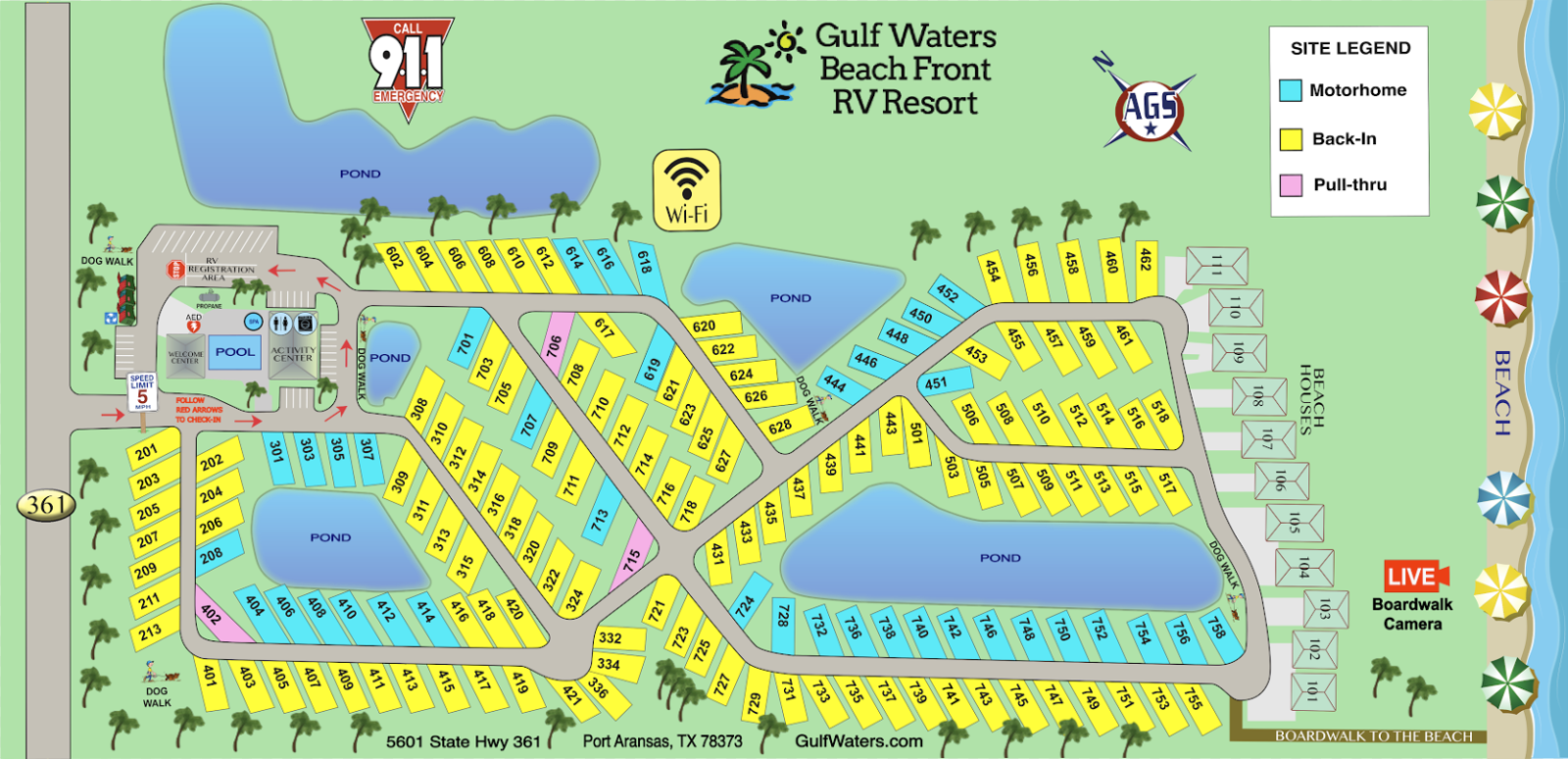Explore Gulf Waters Beachfront RV Resort: Site Map & RV Site Types